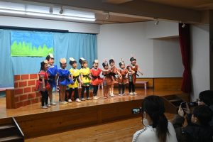 3,4,5歳児はクラスのみんなで考えて作った劇を一人一人が力いっぱい頑張って見せてくれました。