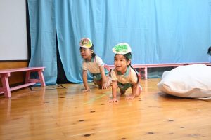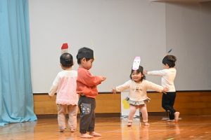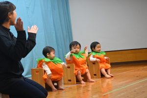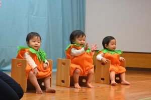 0,1,2歳児クラスはいつもお部屋で先生と一緒に楽しんでいることをみんなの前でとってもかわいい姿で披露してくれました。