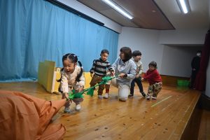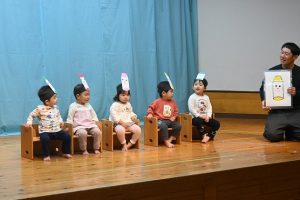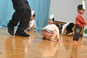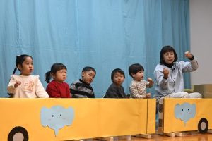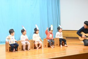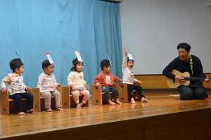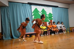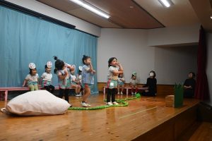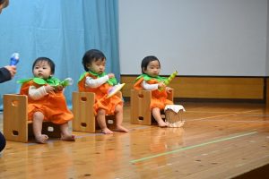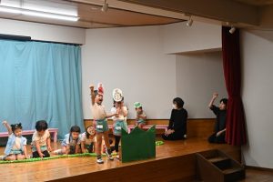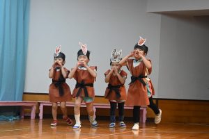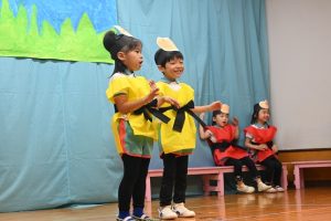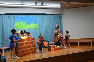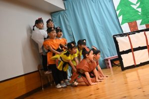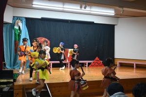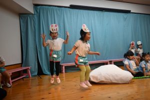 3,4,5歳児はクラスのみんなで考えて作った劇を一人一人が力いっぱい頑張って見せてくれました。