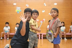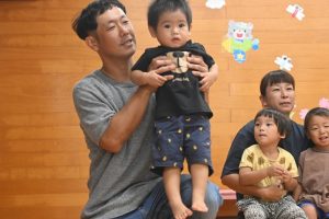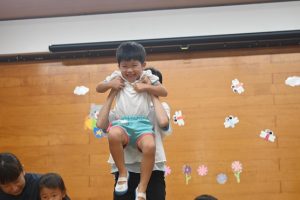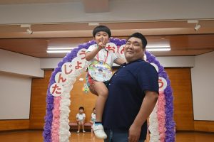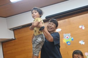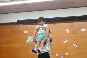 一人一人の名前入りのお誕生日の歌に合わせて先生に高く持ち上げてもらい、みんなで歌ってお祝いしました♪