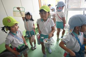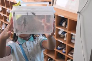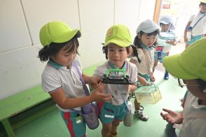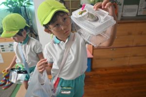 たくさんの虫がいたようで。幼稚園に帰ってきた子ども達が嬉しそうに捕った虫を見せてくれました。