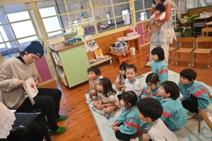 お家の方の読み聞かせは先生が読むのとは違った温かさがあり、子どもたちはお家の方が絵本を読んでくれるのを毎回楽しみにしています。