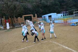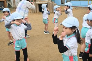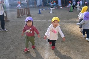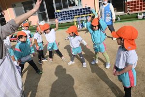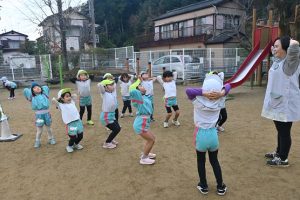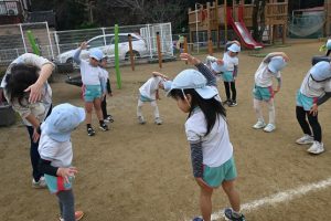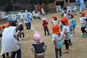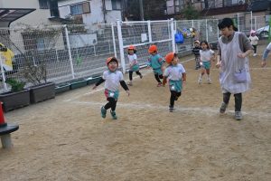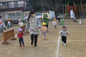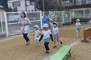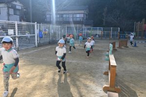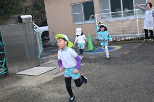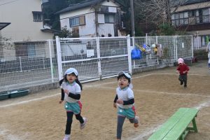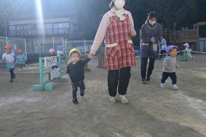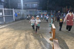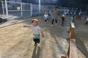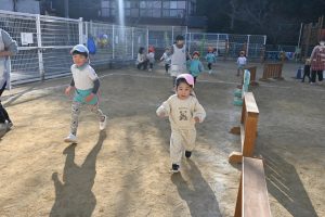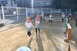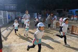 寒い日が続いており、インフルエンザでお休みをしているお子さんもいますが、寒い日も子どもたちは元気いっぱいに外で身体を動かして遊んでいます。合同運動の後もマラソンをしており、年長さんは園外の少し長い距離を、他のクラスの子どもたちは園内を何周も頑張って走っています。。乳児さんもお兄さんお姉さんを見ながら、先生と一緒に走っています。