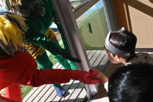 りんご組さんとみかん組は初めて見る鬼にただビックリでしたが、握手をして頭も撫でてくれる鬼さんに少しはホッとしたようでした。