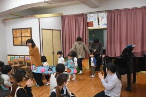今年度最後の2月と3月生まれの方の誕生会を行いました。2月3月生まれの子どもにとっては他の誰よりも待つ時間が長く待ちに待った嬉しいお誕生会でした。