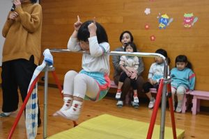 幼児クラスの子どもたちは得意技をみんなに見てもらいました。