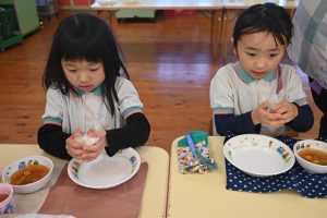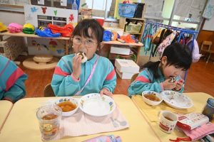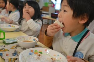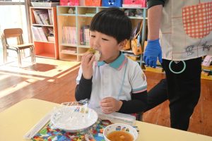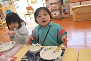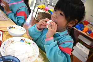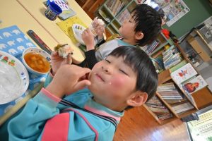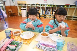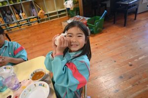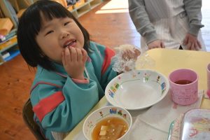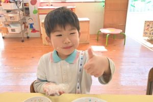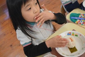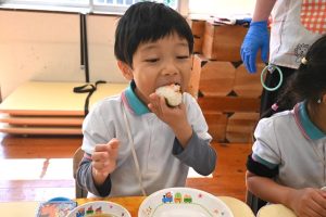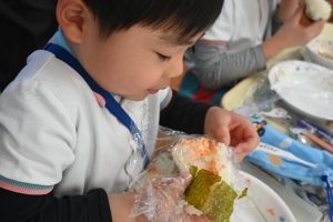 自分で握ったおむすびはとっても美味しくて、5個も食べた子どももいました!おいしかったね!