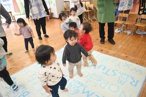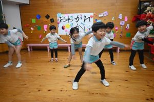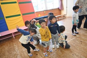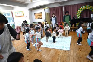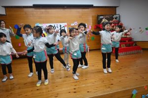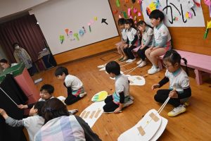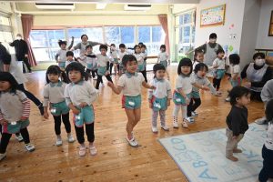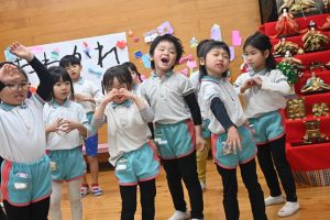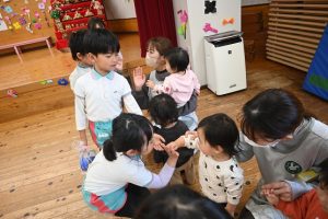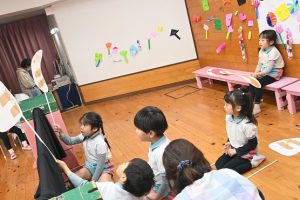 3月に卒園するさくら組さんとのお別れがだんだん近づいてきました。さくら組さんとたくさん一緒に遊んだり、いろんなことを教えてもらったり、優しくしてもらったり…大好きなさくら組さんにありがとの気持ちを込めて一緒に楽しい時間を過ごそうと、すみれ組さんが楽しいことを計画してくれました。