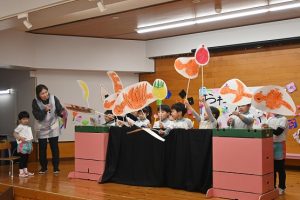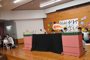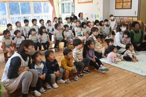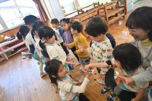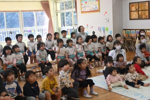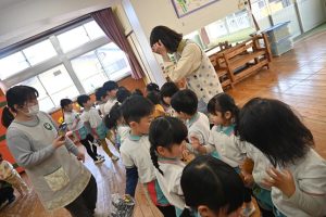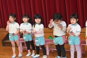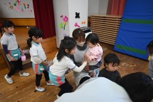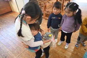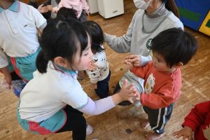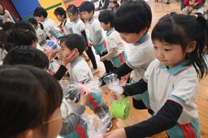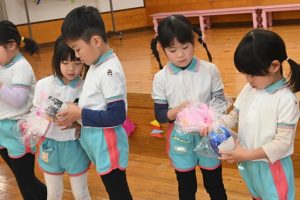 すみれ組からさくら組さんへプレゼント渡し